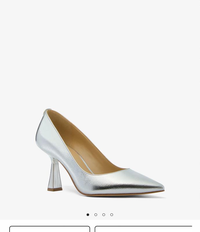 Туфлі класичні делікатні човники, оригінал Amali від Michael Kors, замовляла з офіційного сайту зі США. Розмір вказаний 5.5, тобто на наш 35.5. На жаль, мені на мою худу ногу виявились великі. Тому в реалі вони підійдуть на стандартний 36 розмір. Або ж на повну ногу 35-35.5. Висота каблука 8 см, якраз ідеальний для малих розмірів, щоб не втомлювалась нога. Каблук трохи розширений до низу, тому буде зручний і стійкий. Колір срібло