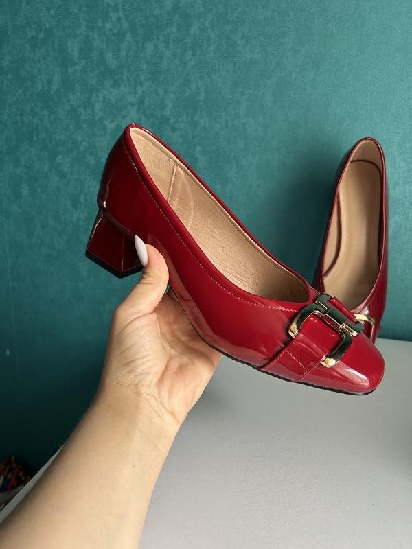 жіночі туфлі на зручному каблуку у червоно-вишневому кольорі 🍒 з золотую пряжкою в вміру закругленим носочком ♥️ Розмір 38 Устілка повністю 25 см Ширина довжина устілки 7,5 см На широку стопу не підійдуть Відправка 1-4 робочі дні Доставка нп/укр/міст/розетка Безпечна оплата чи оплата на карту Оплата доставки і пакування за отримувачем згідно тарифів служби доставки. Торг при замовлені від 1000 грн.