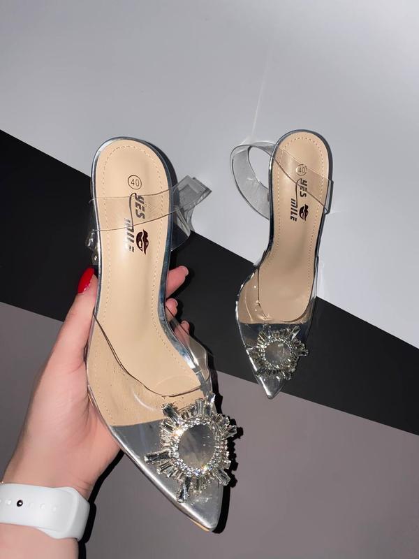 Прозорі туфлі на каблуку з брошкою силіконові туфлі на підборах з камінчиками туфлі на шпи...