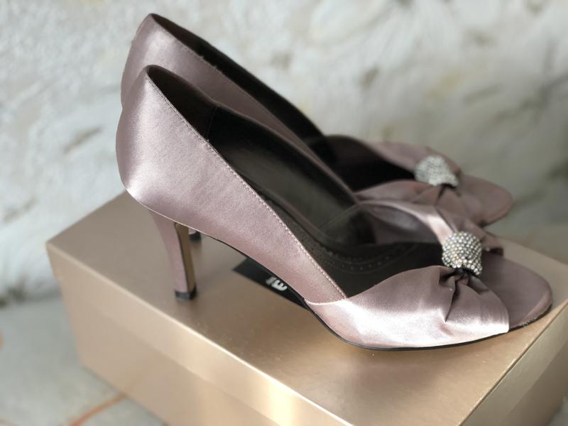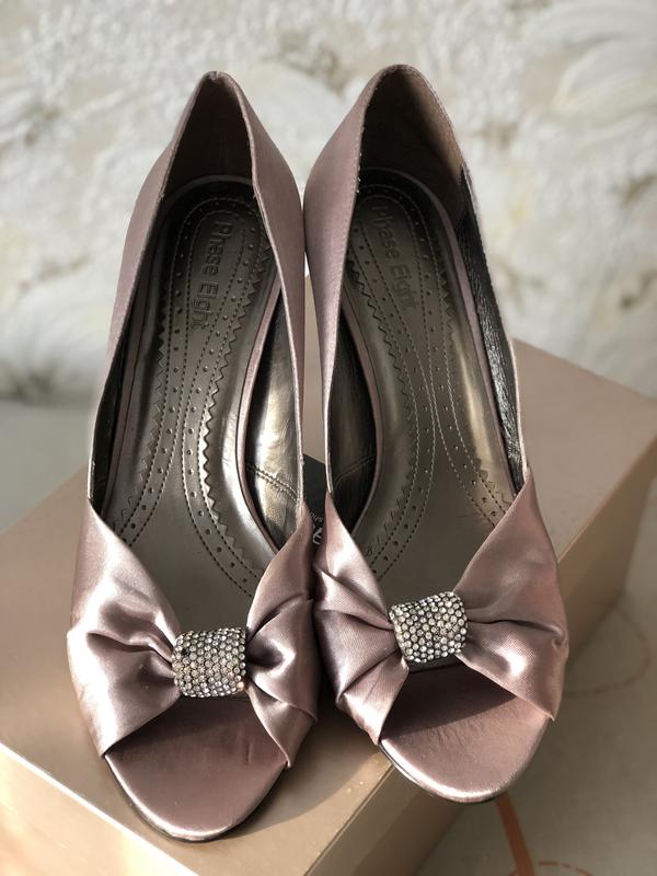 Туфлі з відкритим носком "Phase Eight" на середньому каблуці, р. 38. Нові, але не вистачає одного камінчика в брошці.