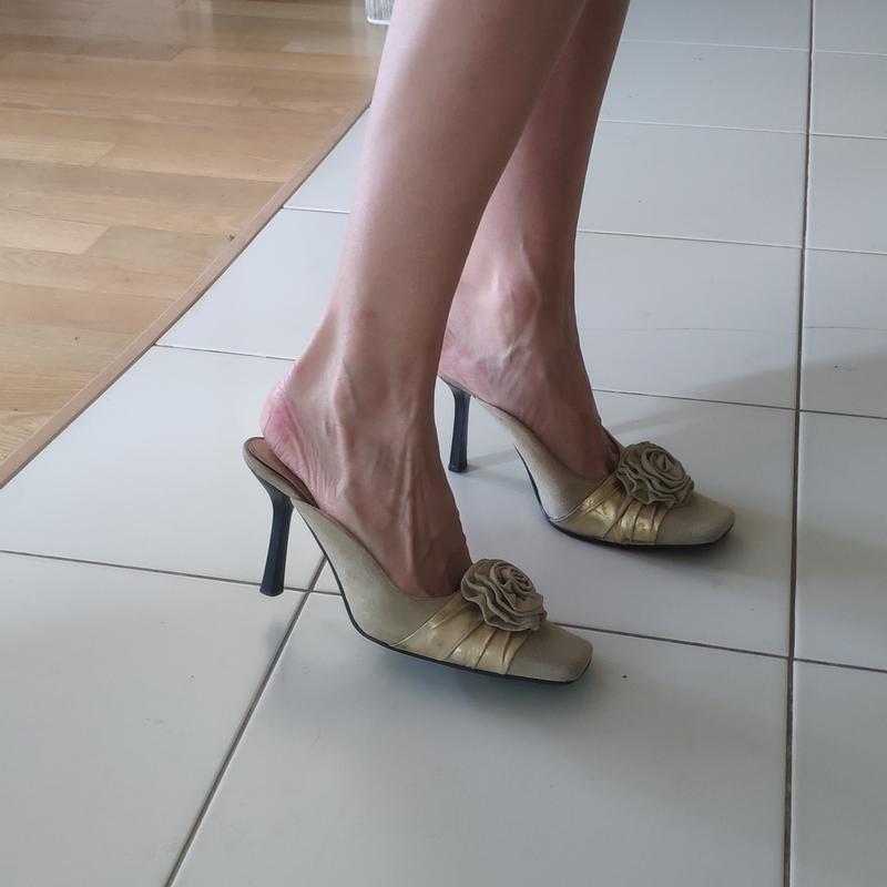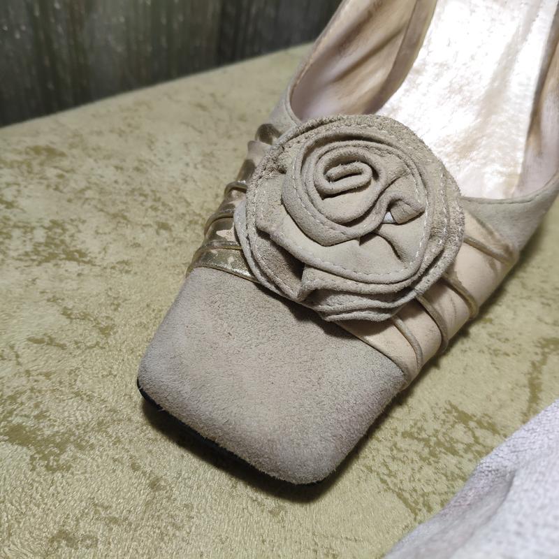 ! Внешне замш в отличном состоянии, а стельку нужно заменить (была позолочена , краска стёрлась и выглядит неприглядно)