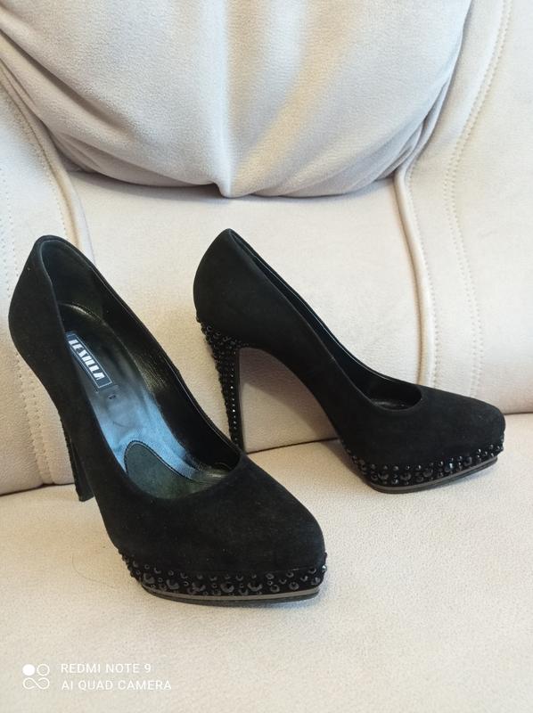 Супер качество, привезены мне в подарок с Италии, но совершенно малы на мой 37 размер. Думаю эко-замш, полностью не уверена, но качество замечательное. Смотряться стильно, модный острый носочек.