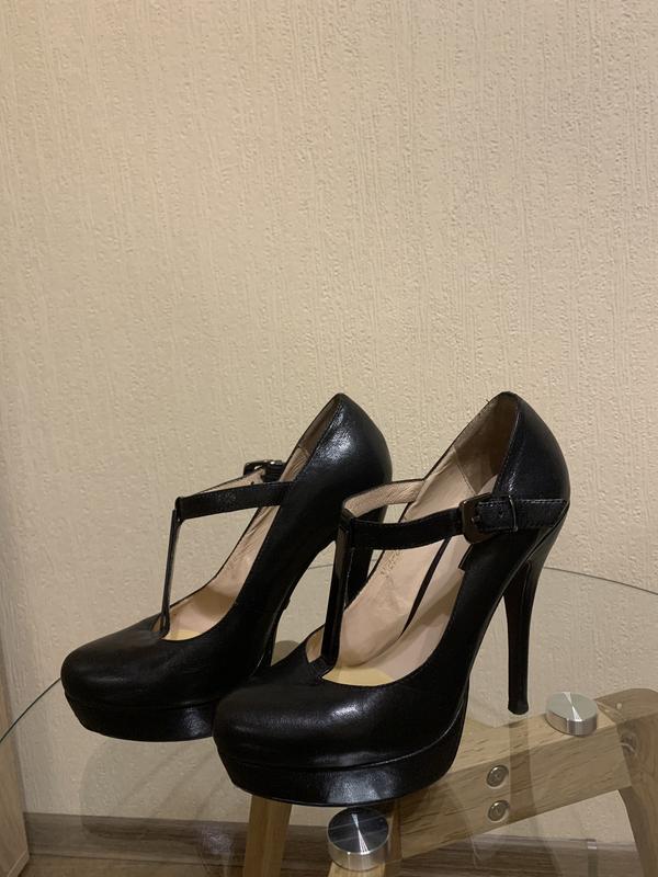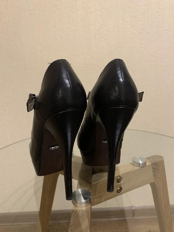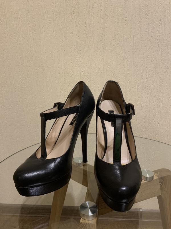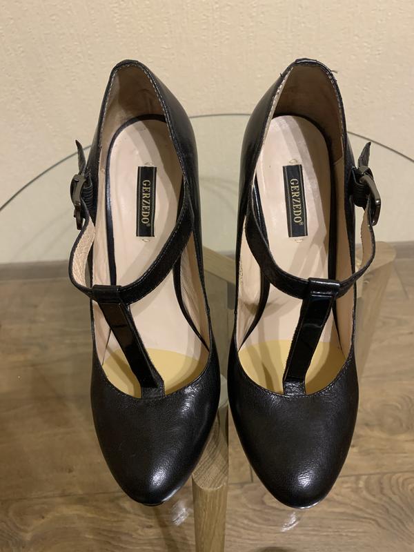 Шкіряні туфлі Gerzedo на підборі 13 см, чорного кольору. Розмір 37. Завдяки поясочку та застібці спереду, утримує ніжку в туфлі. Доволі стійкі для ходьби і навіть танців.