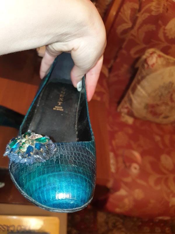 Дуже цікавий незвичайний колір Текстура під крокодильчика На прикрасі всі камінці на місці Трішки облізла всередині устілка, на загальний стан і цілісність всієї туфлі ніяк не впливає ;-) Всі види можливих доставок: 🚂🚅🚊🚎🚚🛵🚲✈ Нова пошта Укрпошта Justin Glovo Особиста зустріч 👗🛍🧾💳💵📤📥 Можливе повернення у день отримання, максимум другий день до обіду