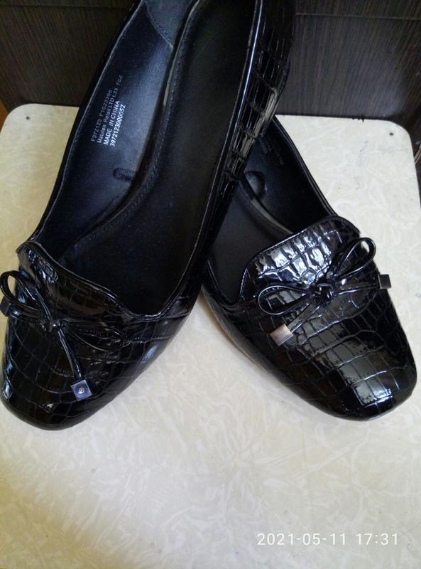 Туфлі Papaya штучний лак відмінної якості . Дуже м'які і комфортні. Розмір вказано 7/41, але вони підуть на стопу 26-26,3 середньої повноти, або злегка широковатой. Є невелике ушкодження на підборах. При носінні взагалі не видно