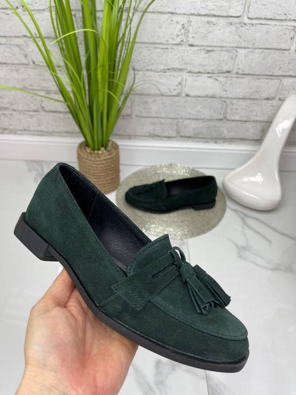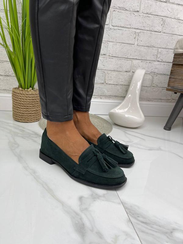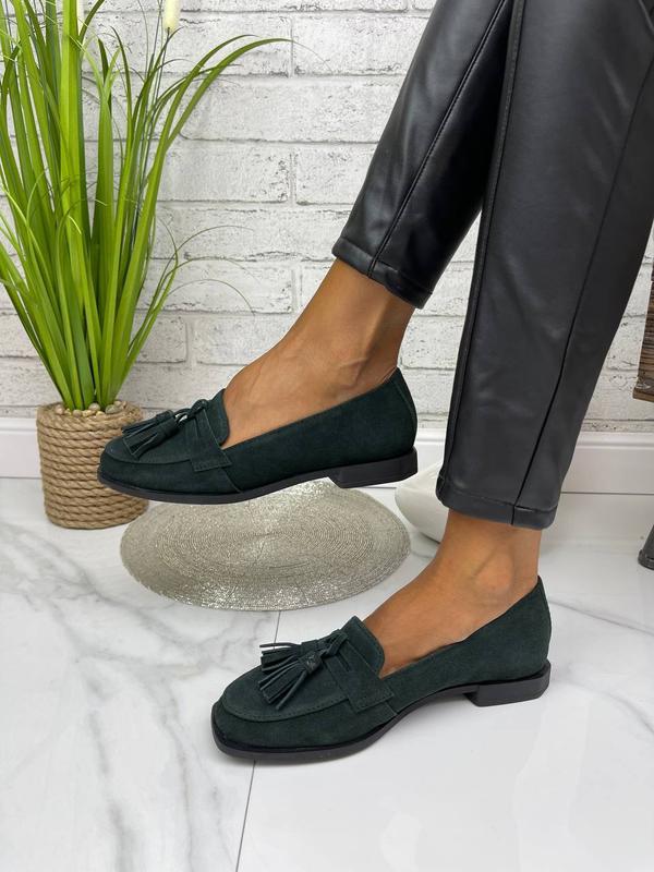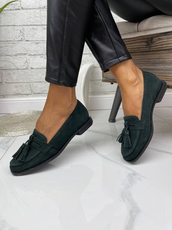 Жіночі замшеві туфлі без каблука Верх: натуральна шкіра, замша Устілка: натуральна шкіра Висота каблука: 1,5 см Колір: зелений Виробництво Україна, Харків Розмірна таблиця( довжина устілки) 36 розмір -23,5 см 37 розмір -24 см 38 розмір -24,5 см 39 розмір -25,5 см 40 розмір -26 см 41 розмір -26,5 см Приємних покупок))