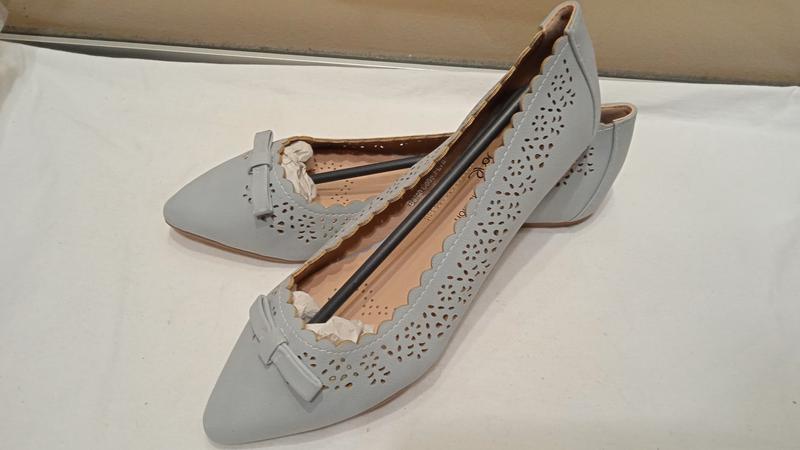 Сріблясті туфлі-балетки з перфорацією з ремінцем