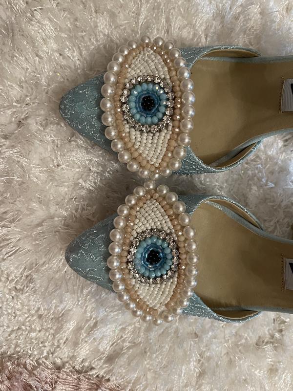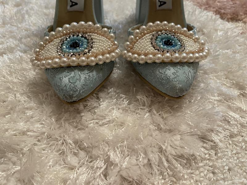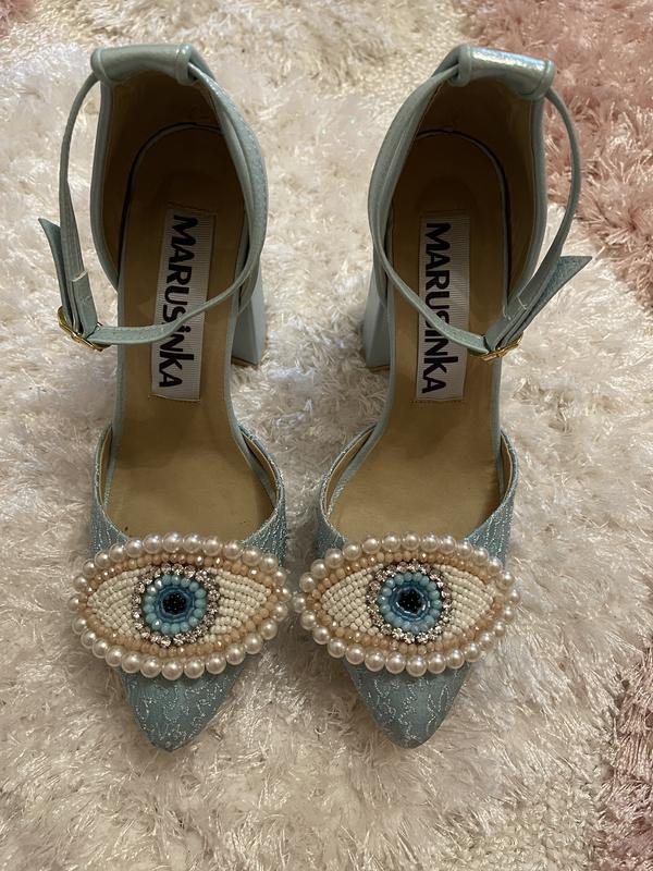 Оригінальні туфлі,просто витвір мистецтва,дизайнерська ручна робота,не вистачає кілька бусинок(видно на фото)Стан відмінний,все видно на фото.Розмір 38-24,5 см (не zara)