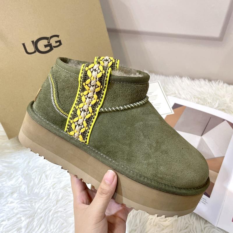Зимние сапоги ugg mini bailey bow женские в горчичном цвете | Уггі ugg boots ultra mini braid platform