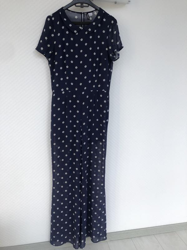 Шикарний брючний комбінезон кюлотами еко h&m в синю смужку 44-46