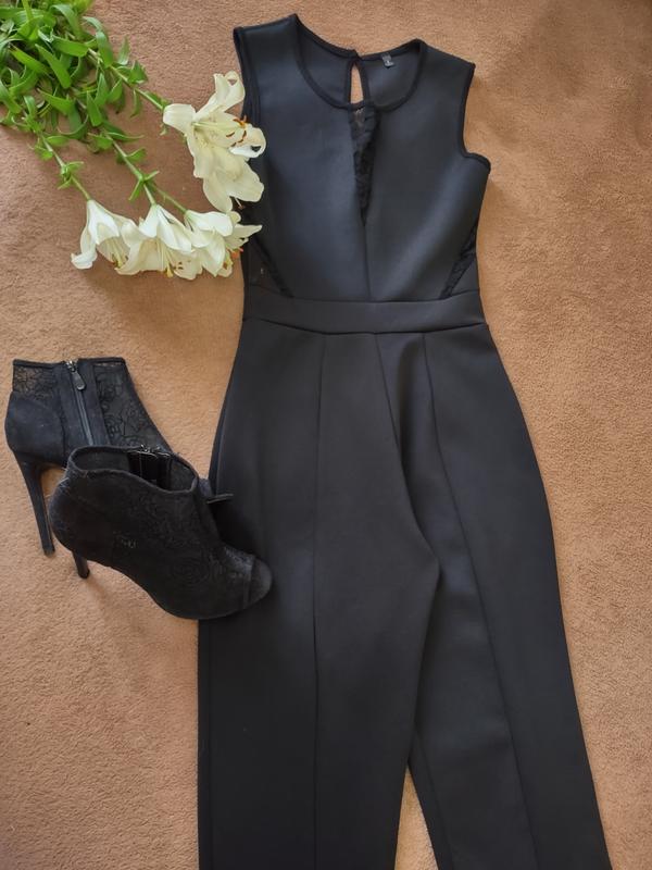 Чорний красивий комбінезон.Дуже стильний .По верху є вставки гіпюру .Розмір 42-44.По всім питанням пишить