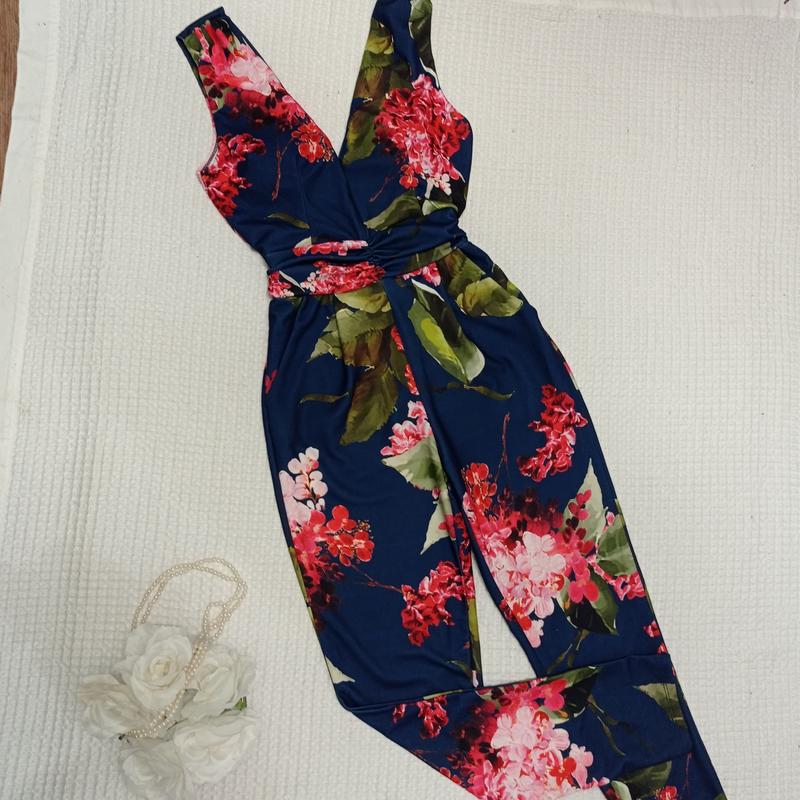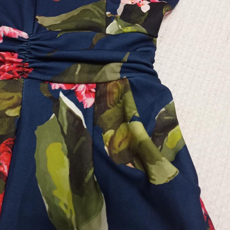Комбінезон в квітковий принт,з карманами,пояс драпіровка, ліф з поролоном,стан нової речі, без ньюансівЗаміри на фото, тягнеться