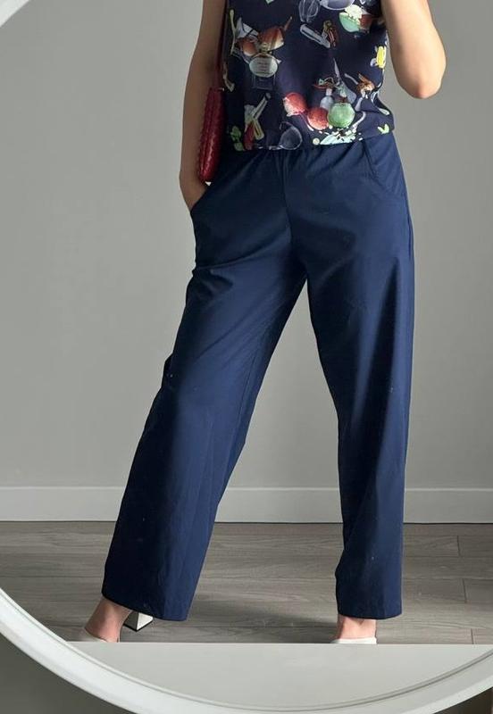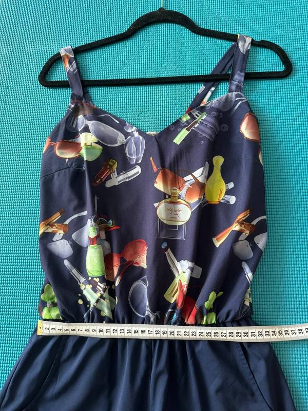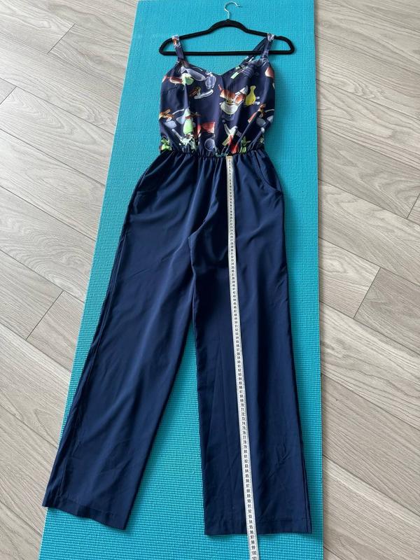 Літній жіночий комбінезон на бретелях з брюками синього кольору