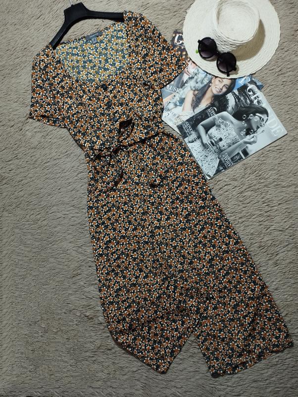 Стан нового. Гарний комбінезон з кюлотами та поясом. Тканина легка, не тягнеться. Виглядає супер 😍 Розмір 12/40/L, але дивіться по замірам Заміри (напівобхват):Груди 52Талія 38(тягнеться до 45)Стегна 60Крок 47Довжина від плеча 115