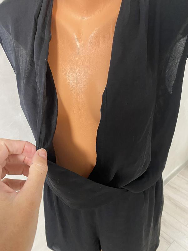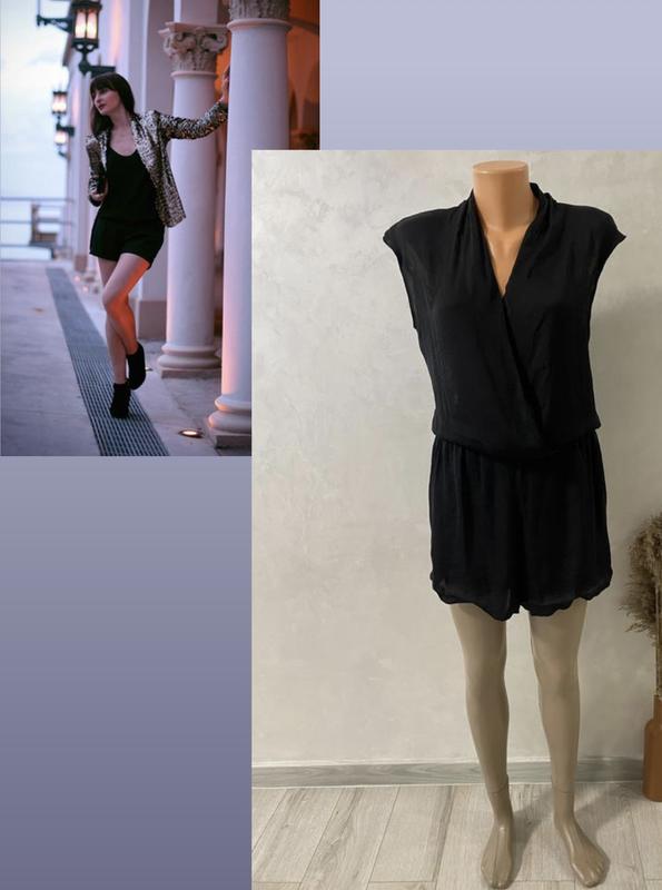 На тілі немає (на манникене)не тягучий,не щільний)у складі коттон віскоза поліестер)на талії тонка гумка, є дві кишені спереду,дэкольте «на запах»рукави короткі)всередині є шорти-підкладка)низ зарубаний -оверлком) Довжина 79 см) Плечі 47 см-опущені ) Пог 47 см) Піт 34 см) Побіди 60 см) Один з наймодніших трендів останніх років в жіночому гардеробі — комбінезон. Однак не в кожної дівчини знайдеться ця річ. Хтось не вирішується його носити, хтось вважає незручним, а хтось просто відкладає його покупку на потім. Можна наводити безліч аргументів за і проти, але є безперечна перевага: він чудово сідає по фігурі, приховуючи всі недоліки і відтіняючи гідності. Чёрный цвет не выходит из моды. Это цвет классических нарядов, который мы нещадно эксплуатируем для создания строгого или таинственного образа и подчёркивания стройных форм (даже если таковые далеки до идеала). Наряды в этом цвете мы надеваем и для повседневной носки, и для торжества. Соединение преимуществ комбинезона и чёрного цвета даёт на выходе стильную, модную, универсальную вещь. Она выручит во многих ситуациях и подойдёт для любого мероприятия. Главное – подобрать подходящий фасон.