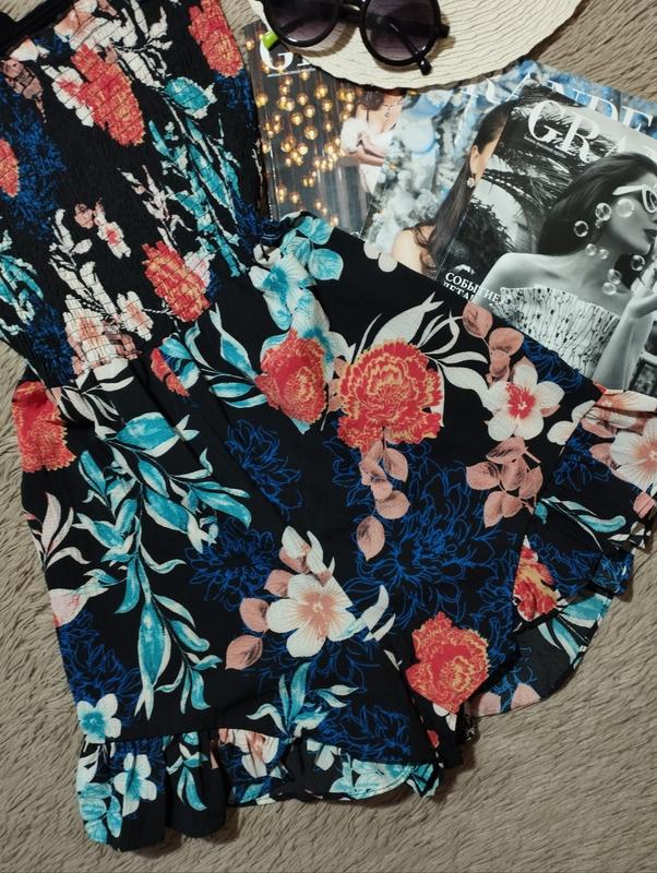 В ідеальному стані. Гарний комбінезон з відкритими плечима та рюшами. Тканина легка, не тягнеться. На грудях резинка. Розмір 12/40/L, але дивіться по замірам