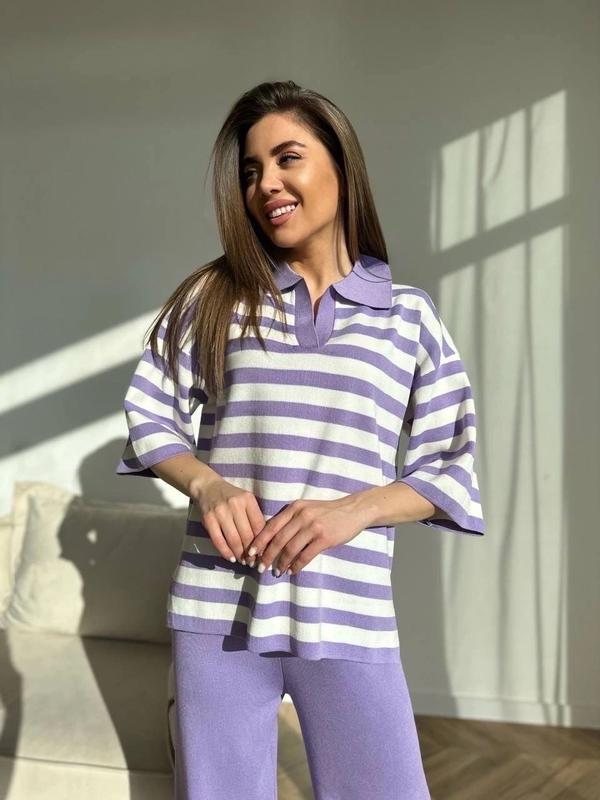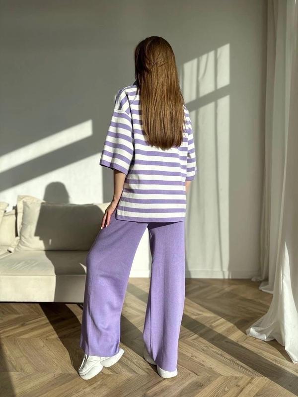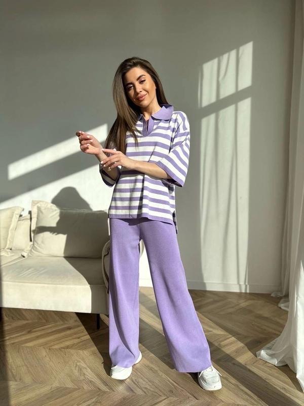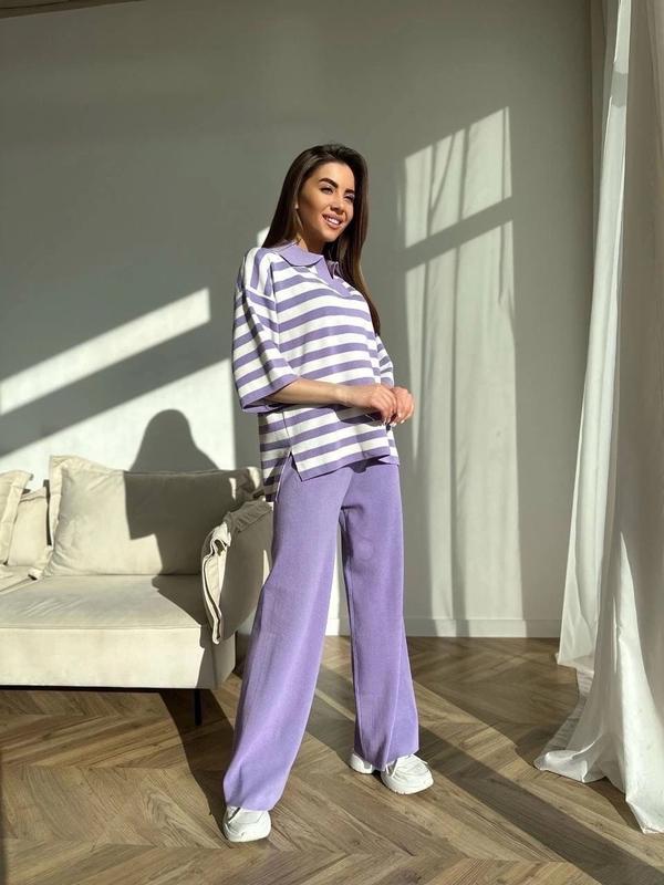 КОСТЮМ ОВЕРСАЙЗ З БРЮКАМИ ПАЛАЦЦО ВИГОТОВЛЕНИЙ З ТРИКОТАЖУ ГЛАДКОЮ МАШИННОЇ В'ЯЗКИ ВИСОКОЇ ЯКОСТІ, КОФТА ПРЯМОГО КРОЮ З ЕЛЕГАНТНИМ ВІДКЛАДНИМ КОМІРЦЕМ,