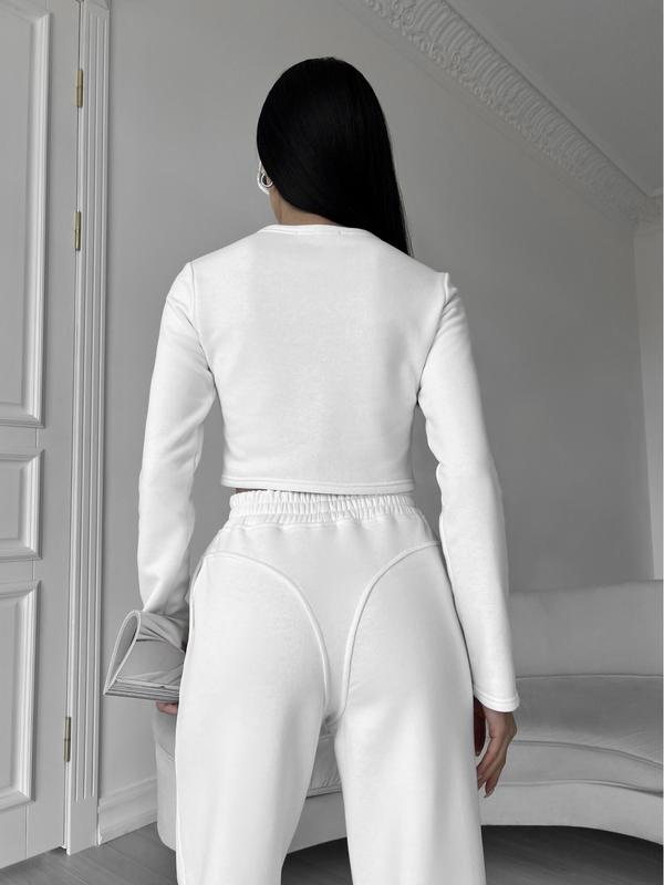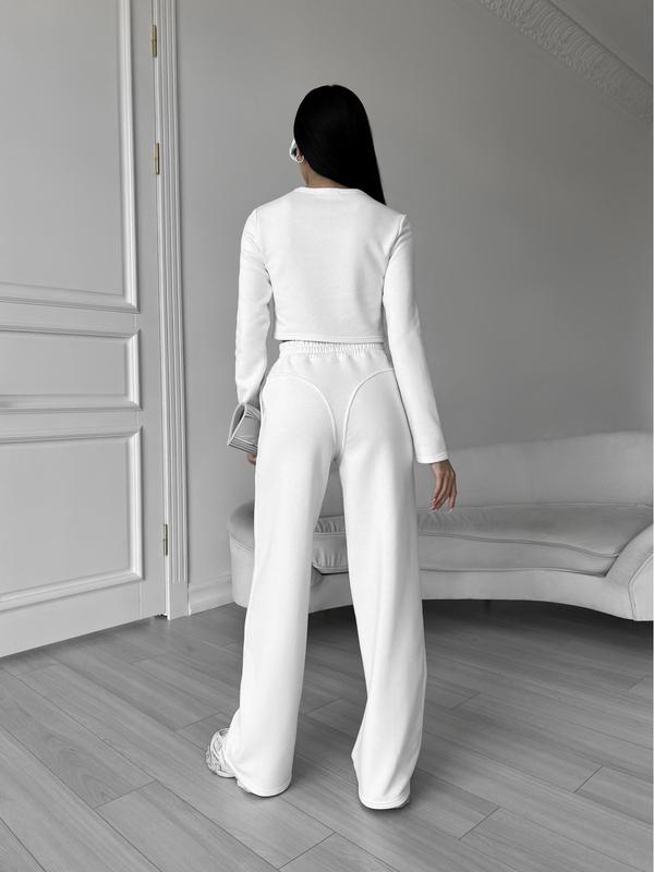 Спортивний костюм з широкими штанами в стилі Mugler і укороченим топом, ідеально підійде для тих, хто шукає стильне поєднання комфорту і моди.