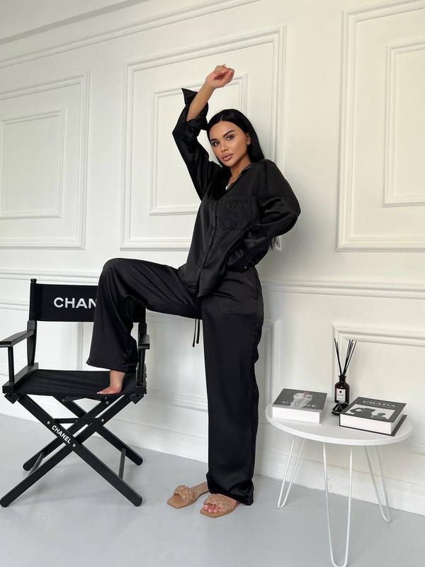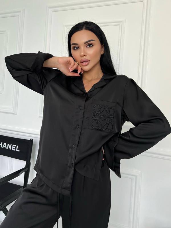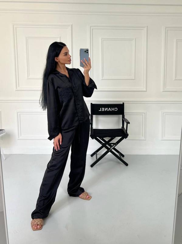 Костюм атлас шовк celine сорочка рубашка і брюки комплект