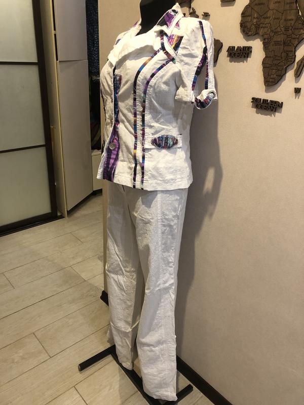 Вишуканий лляний жіночий брючний костюм блуза+брюки вільного крою/ 50-52,54-56,58-60 / мод 842