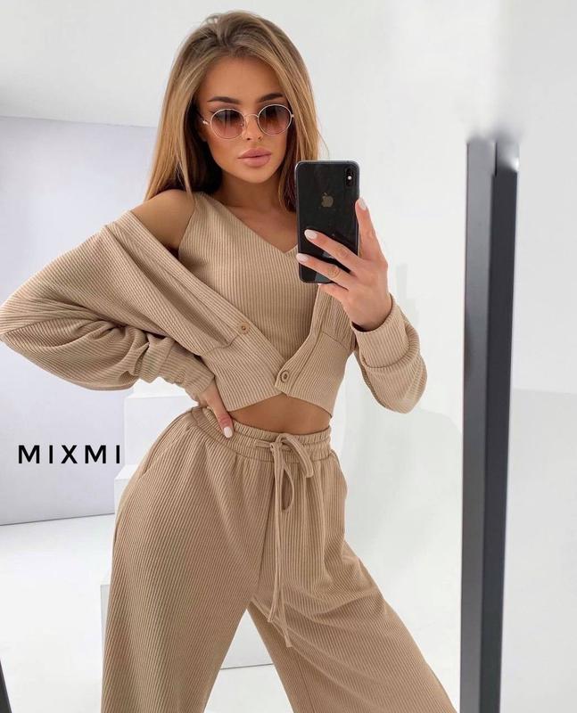 НОВИНКА🔥 Костюм трійка Мод.1787 Ціна: опт 709грн Розміри: 42-44, 44-46, 48-50 Тканина: рубчик Турція Кольори: блакитний, чорний, зелений, хакі, беж та помаранчевий