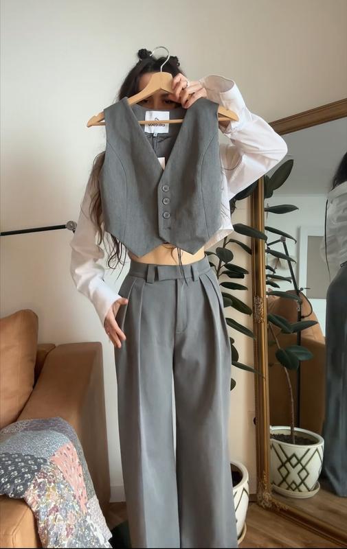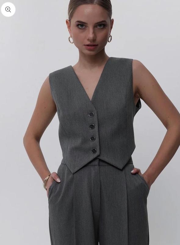 Жилетка S, але по факту XS, брюки палаццо довжина 101 см.