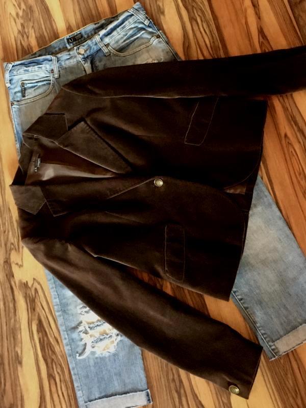 Літній комплект від "armani": коричневий оксамитовий жакет і джинси