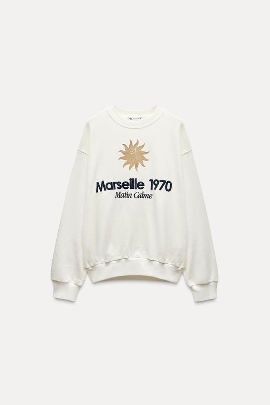 Світшот зі 100% штапельної бавовни з круглим коміром і довгими рукавами. Контрастний принт і вишитий напис спереду та окантовка в рубчик на краях.