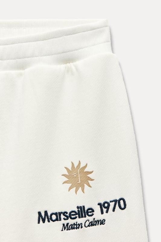Широкі штани зі 100% штапельної бавовни з еластичним поясом, середньою посадкою, принтом і контрастним вишитим написом.