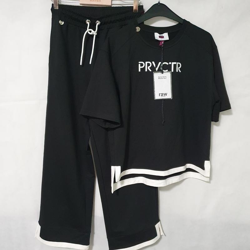 Шикарної якості прогулянковий/спортивний костюм із прямими штанами. Турецького бренда преміумсигменту RAW. Шикарний склад котон 95% 5% еластан. Розмір М/Л. Штани — НОТ 36 см гумка++. Н 51 см. Довжина 100 см. Футболка Футболка Пог 54 см. Довжина 58 см/64 см. Усі питання до оплати.
