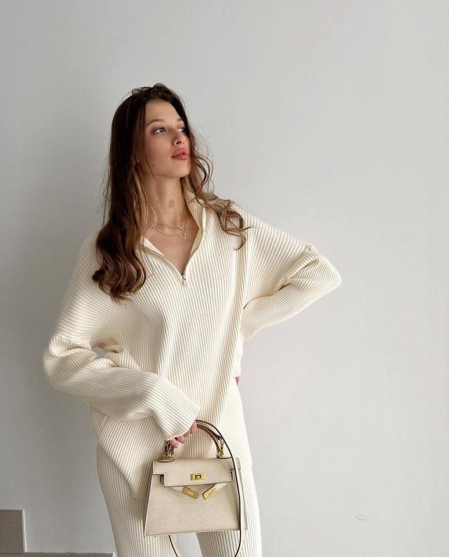 Ідеальний варіант костюму зв стрічкою, який буде поєднуватись з короткою курткою , або косухою 😍😮 В прохолоду- зігріє, та надасть відчуття комфорту, завдяки своєї м'якої текстури 🥹🥰