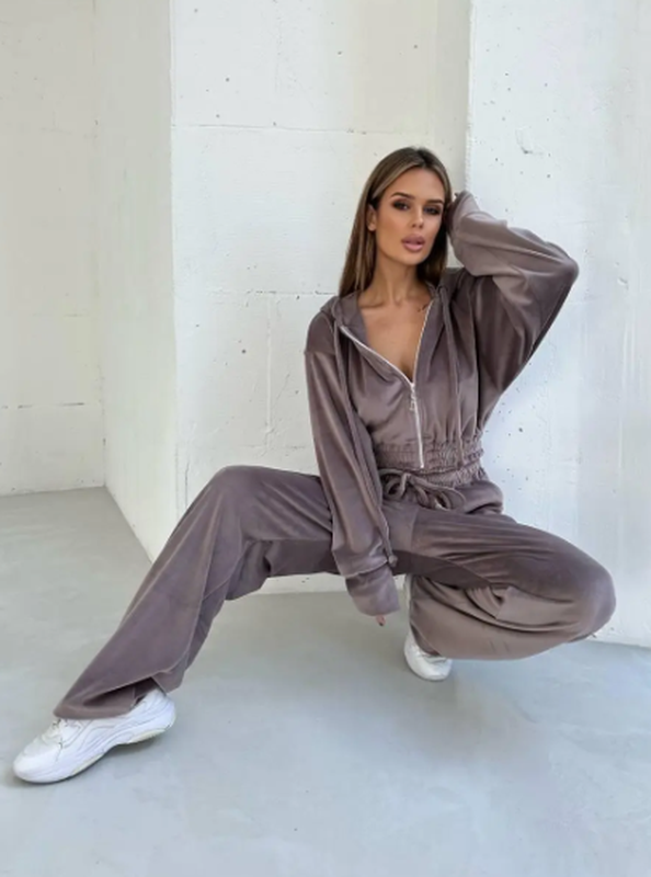 Кофта укорочена на молнии. Брюки ровные, на резинке + высокая посадка. Ткань: плюшевый велюр-спорт Размеры: 42-44,46-48 42-44: Кофта: длина 37 см, рукав 73 см, Грудь 94 см. Брюки: длина 104 см, талия 62 см (на резинке), бедра 98 см. 46-48: Кофта: длина 38 см, рукав 73 см, Грудь 102 см. Брюки: длина 104 см, талия 66 см (на резинке), бедра 104 см. Цвета как на фото.