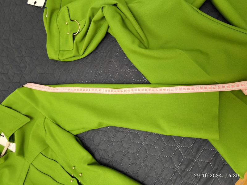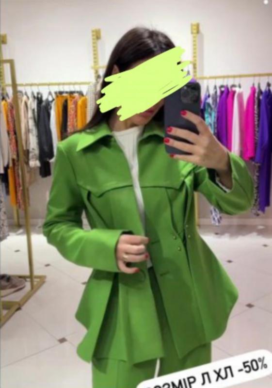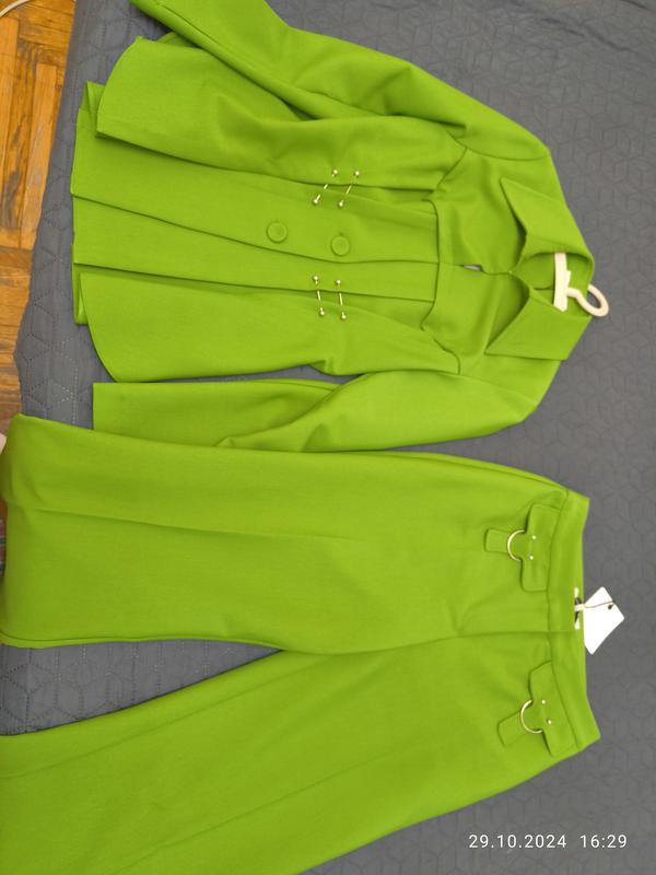 Колір молодої оливки. Костюм з преміум магазину одягу виробницва Турція. Купила по знижці. Поки не було нагоди надіти, а я не люблю коли речі просто висять в шафі. Продати готова тільки за вартіть , яку брала, або хай висить далі).