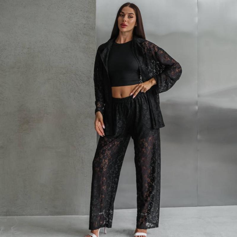 Костюм жіночий мереживний оверсайз сорочка штани вільного крою на високій посадці якісний...