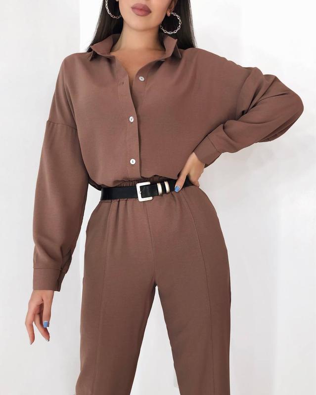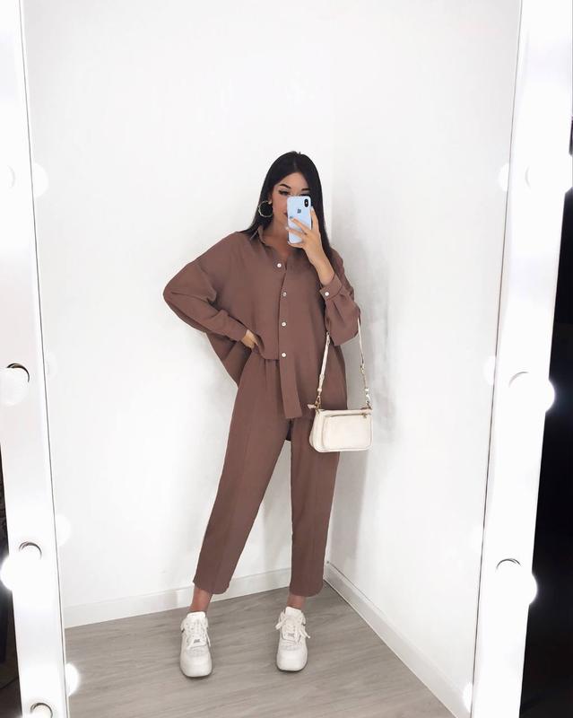 Костюм 😍Модель 118✨▪️Розмір: 42-46▪️Тканина: креп жатка▪️Колір: чорний, трава, пляшка, мокко, малина, блакитний 💰Ціна : 670 грн