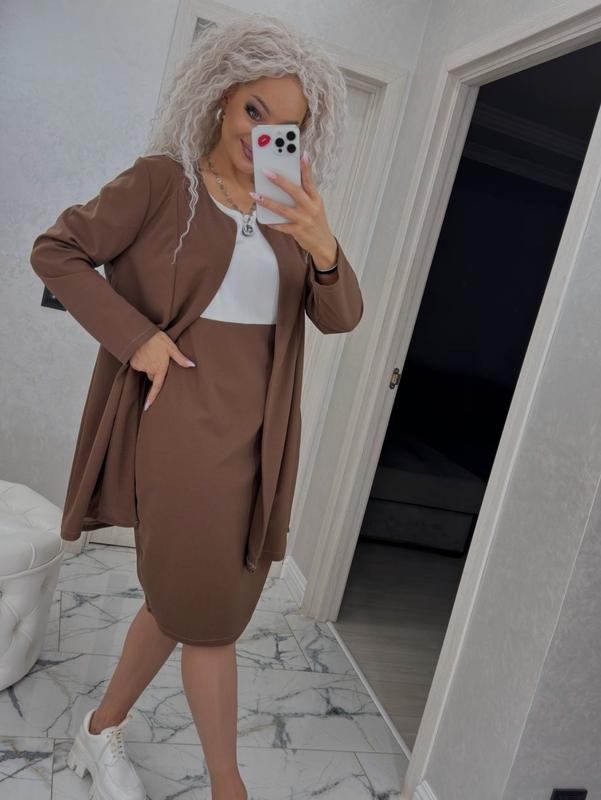 Костюм двійка Плаття+кардиган в наявності 46/52/60 заміри на розміри на фото.Дуже якісна тканина і приємна до тіла.Є В СИНЬОМУ КОЛЬОРІ.