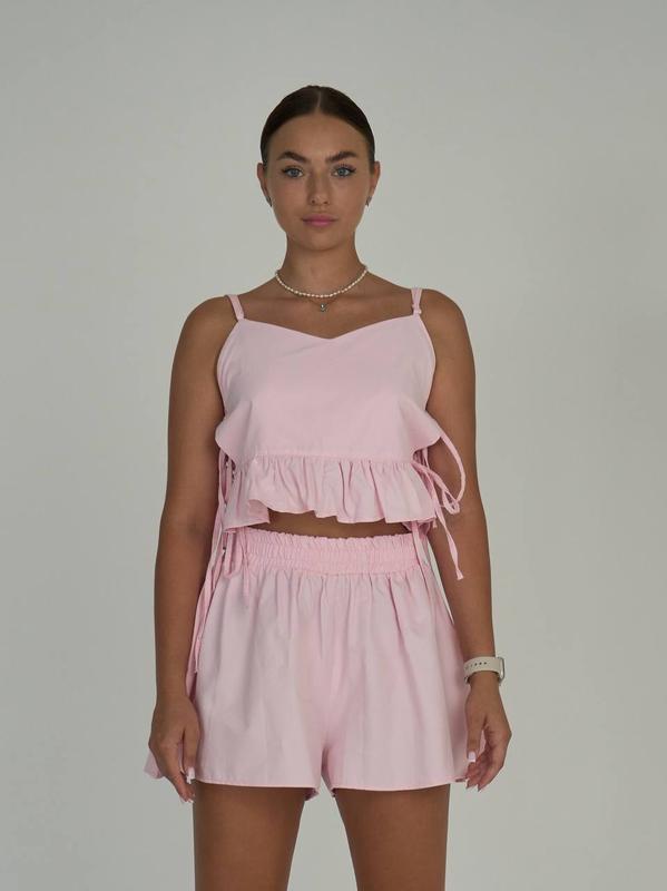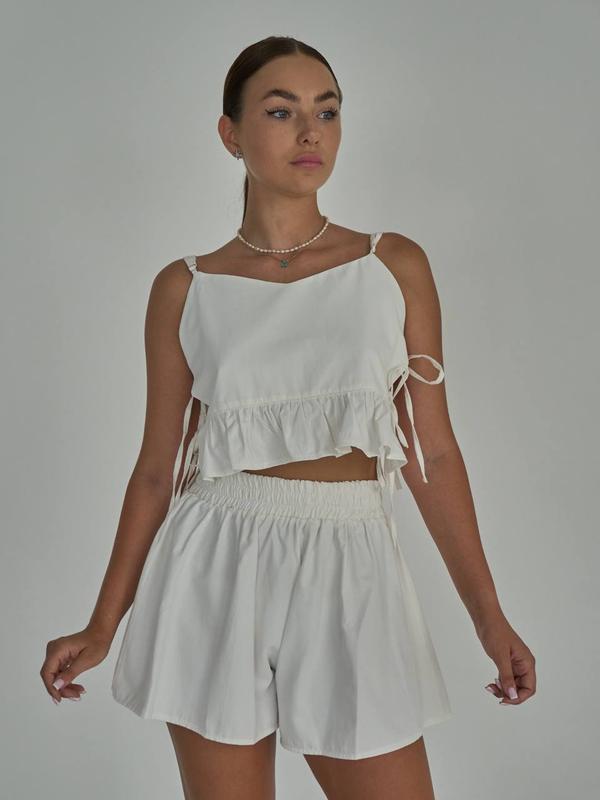 🤍Костюм із 100% бавовняної тканини ідеальний літній варіант під кеди або підбори. Топ регулюється по довжині бретель та у об’ємі , шорти зручної посадки 🫶