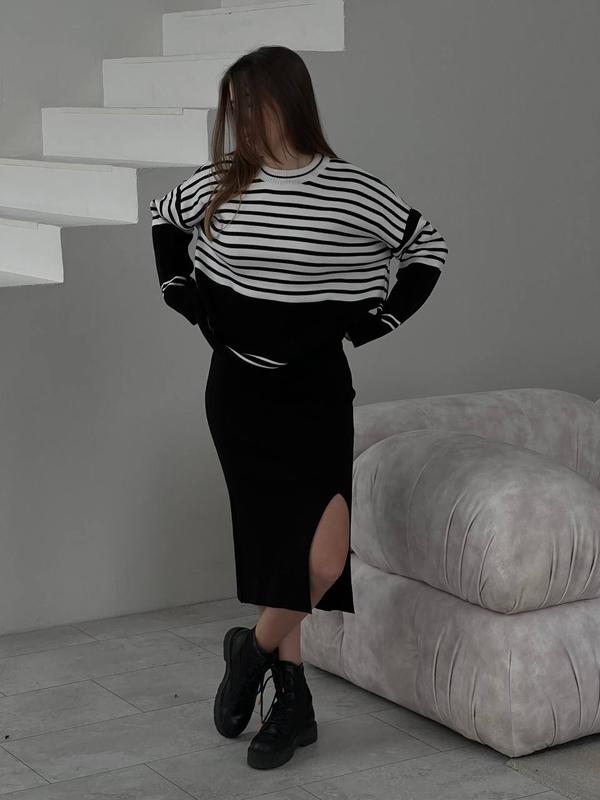 ◾️Модель 520◾️матеріал: акрил◾️розмір універсальний◾️кольори: чорний, коричневий◾️довжина: кофта 67 см, юбка 72 см