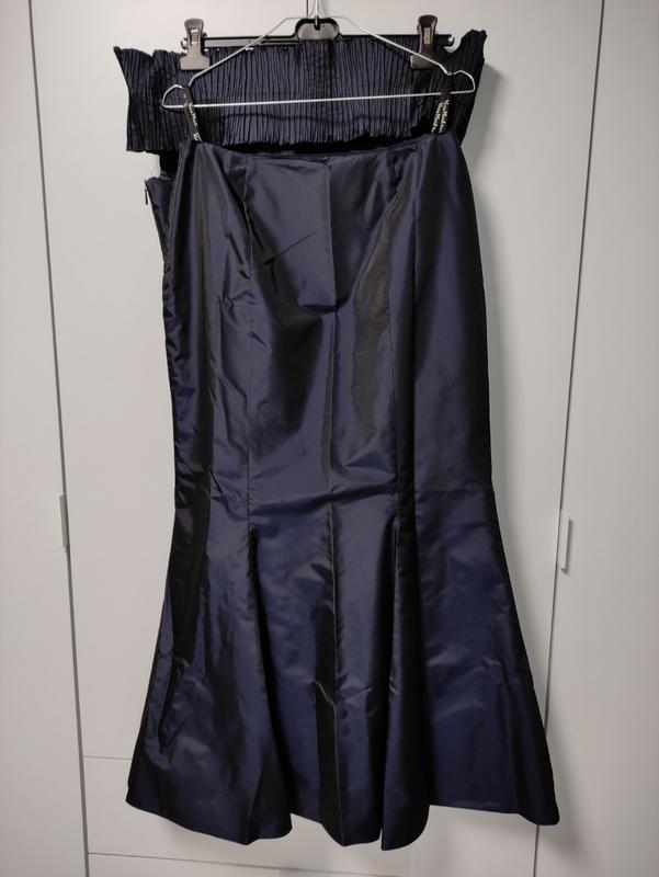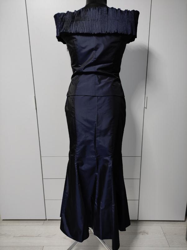 Вишуканий вечірній костюм з юбкою/ спідницею Vera mont Франція. Тканина ацетат (штучний шовк), синій колір хамелеон. Спідниця силует "рибка", верх корсет. Виглядає неймовірно вишукано. Стан нового, без паперової бірки. Відправляю НП після оплати на карту Приватбанк, наложеним по предоплаті або безпечною оплатою
