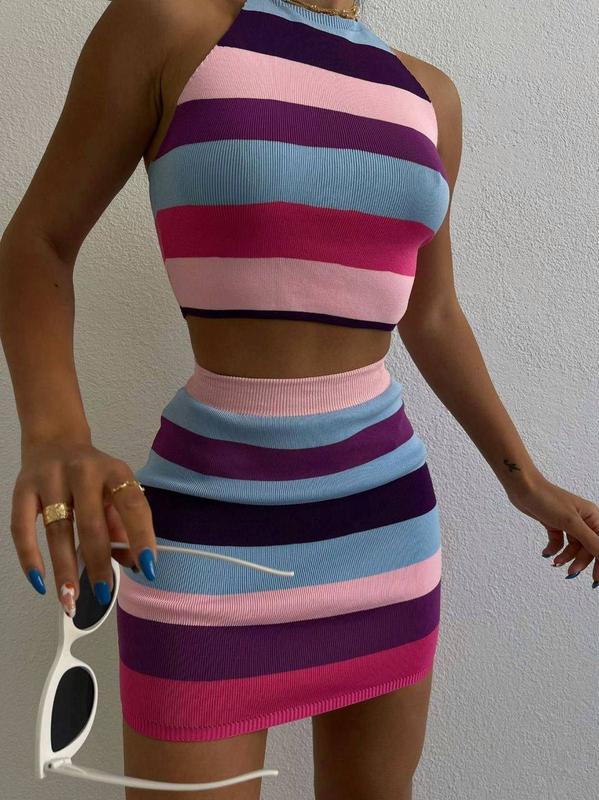 Накладний платіж ❤ комплект в смужку кроп топ майка халтер і спідниця на високій талії