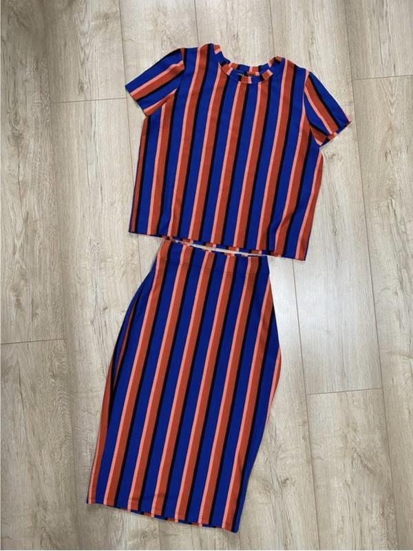 Смугаста бавовняна сорочка в смужку h&m | Костюм двойка футболка топ юбка у смужку bershka zara h&m