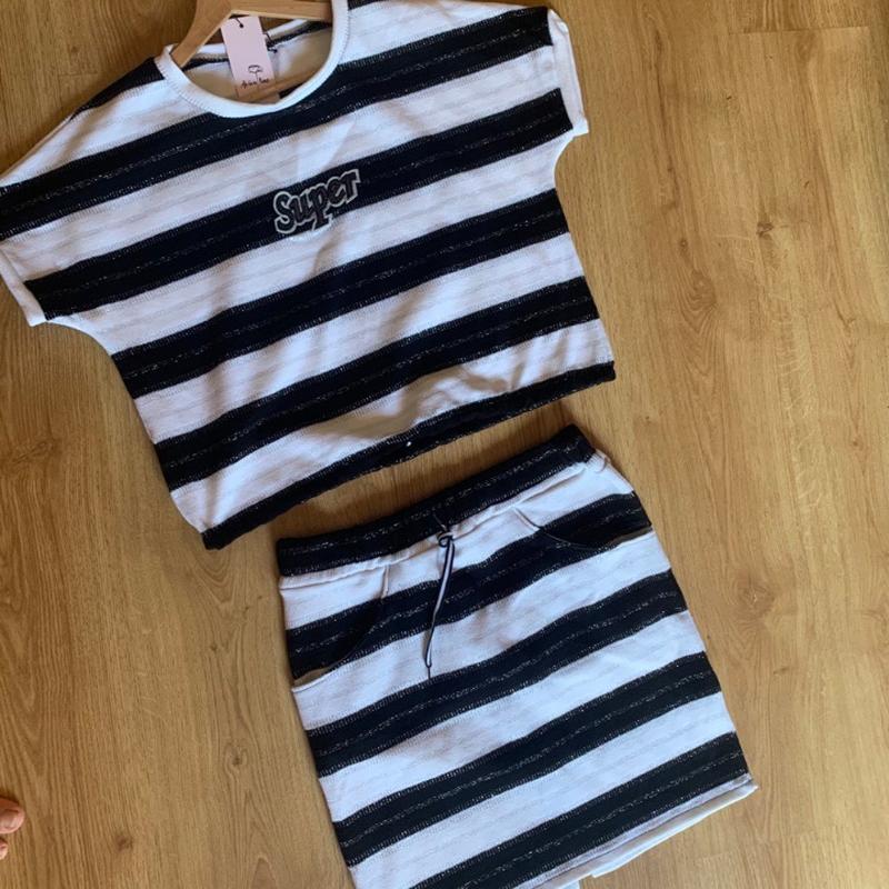 Жіночий турецький костюм кофта + спідниця в смужку чорний з білим 2023