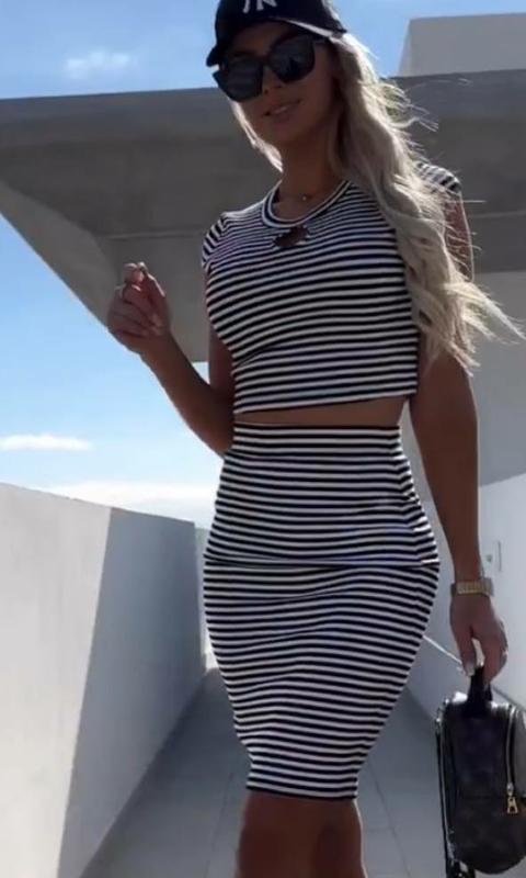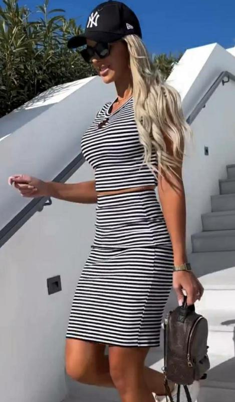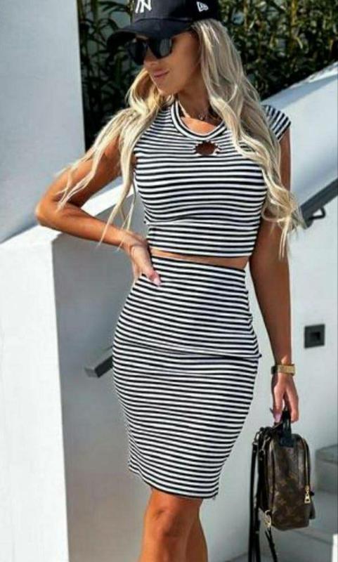 🧚🏻♀️Стильний костюм з юбкою 🧚🏻♀️ Двійка(юбка+топ)🫦 Мод 037📍Тканина - трикотаж;📍Розміри :42-44,46-48📍Кольори - полоска