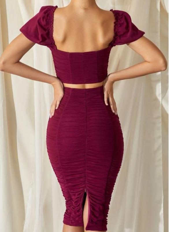 Шикарний комплект набір костюм від Oh Polly. Насичений сливовий темно-бордовий колір. Топ у розмірі 8 S, спідниця 10 М, підійде на розмір S. Всі заміри за запитом. Сток, новий з бірками.