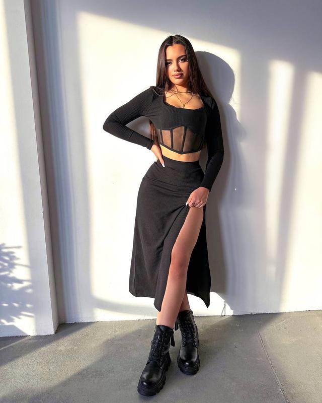 Костюм у трьох кольорах з елементами корсету. Спідниця з розрізом на ніжці. 😍