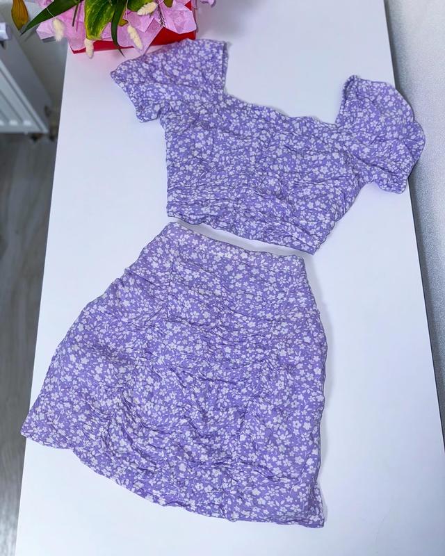 Костюм из муслина в принт топ на кулиске и юбка хлопок
