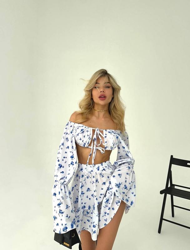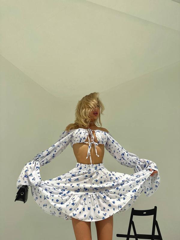 Наш ідеальний костюм вже чекає на тебе 🩷 гарний топ на завʼязках та юбка сонце, яка гарно підкреслить талію ❤️🔥