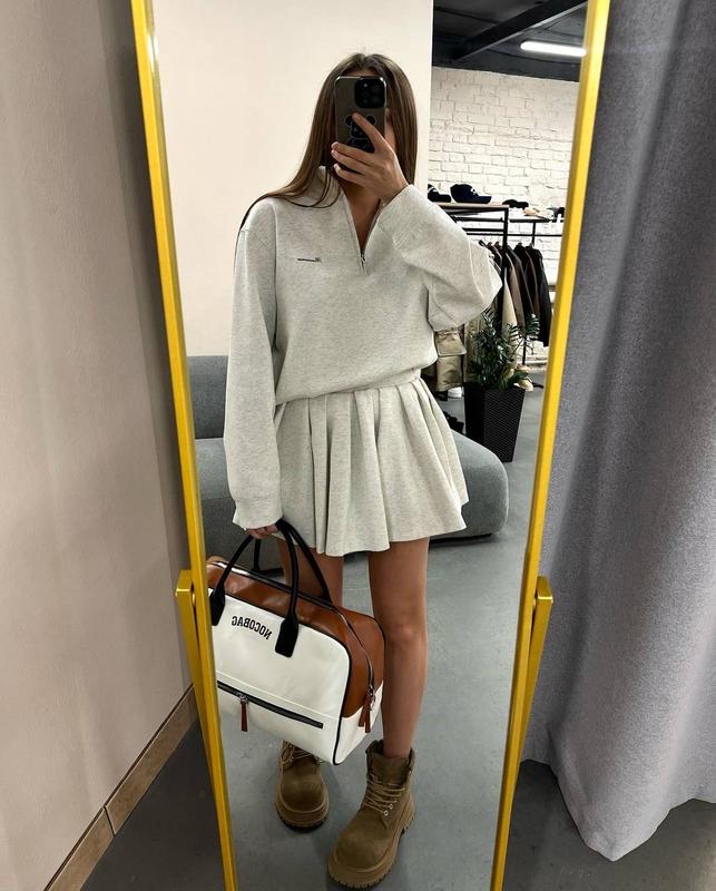 💓НОВИНКА💓 Комплект 2-ка🤍 Модель: 195 Розмір: 42-46 Оверсайз Тканина: Турецька двонитка Кольори: Чорний, меланж. Ціна: 899 грн🏷 Спідниця на резинці, на кофті якісний накат☝🏻
