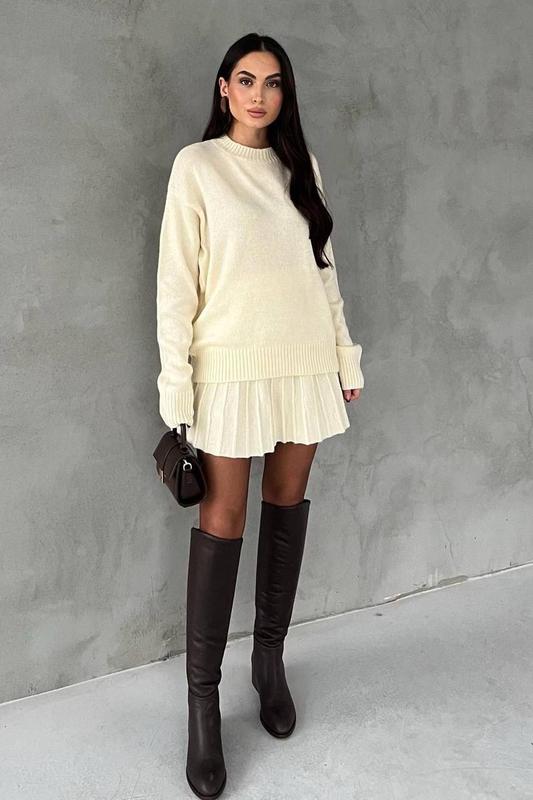 Тканина: машинне в'язання Розмір: універсальний 42-46Верх:Довжина 59 смРукав від горловини 67 смПОГ 59 смСпідниця :Довжина 45 смПояс 60-100смОС вільний