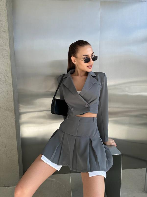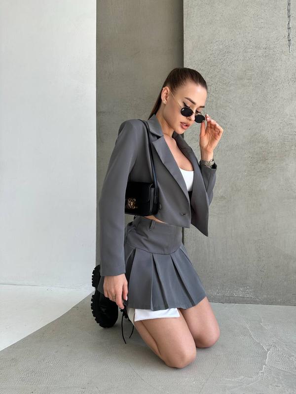 Жакет укорочений оверсайз, ультрамодна міні-спідниця зі складками на низькій посадці та імітацією кишень з коттону.